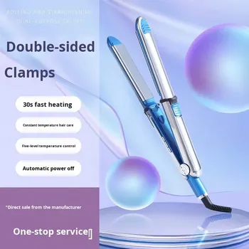 Plancha de pelo de acero inoxidable de doble uso 2 en 1, rizador giratorio de 360 grados, herramienta de estilismo de iones negativos eléctrica